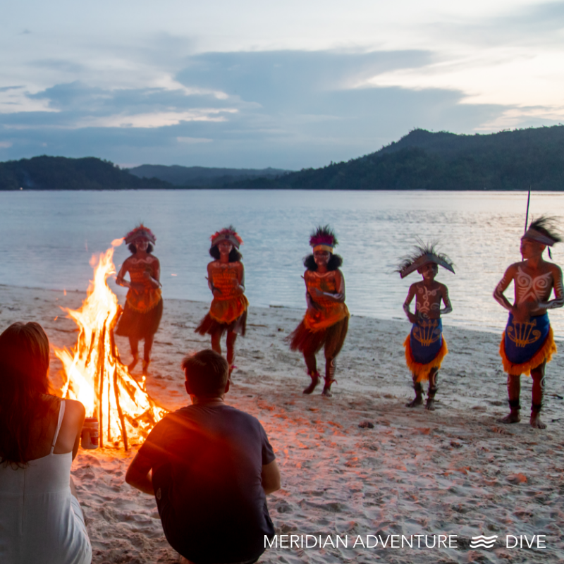 At Meridian Adventure Dive Resort, guests are invited to experience this culture respectfully and authentically through monthly traditional Papuan dance performances held during resort BBQ evenings.