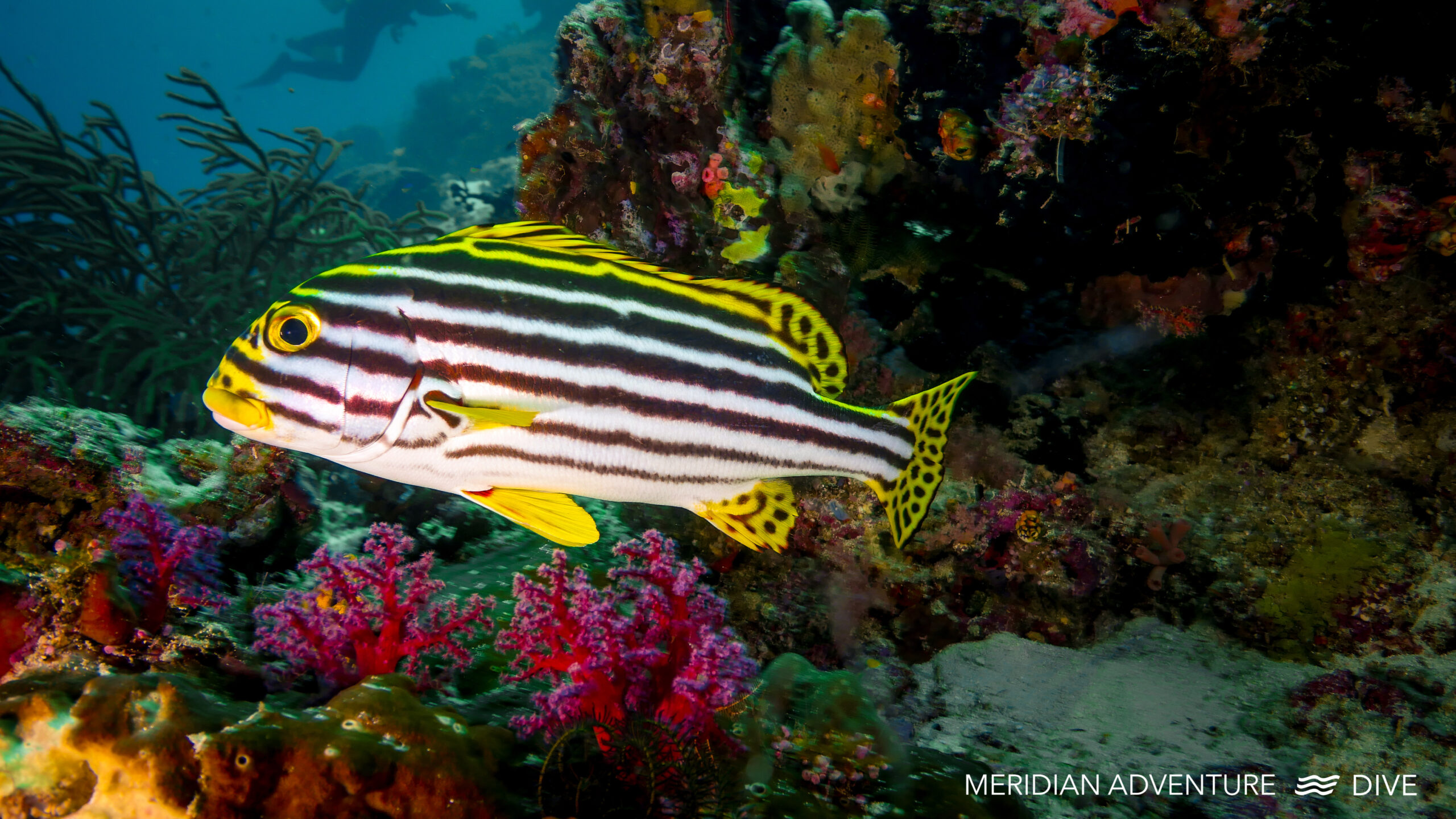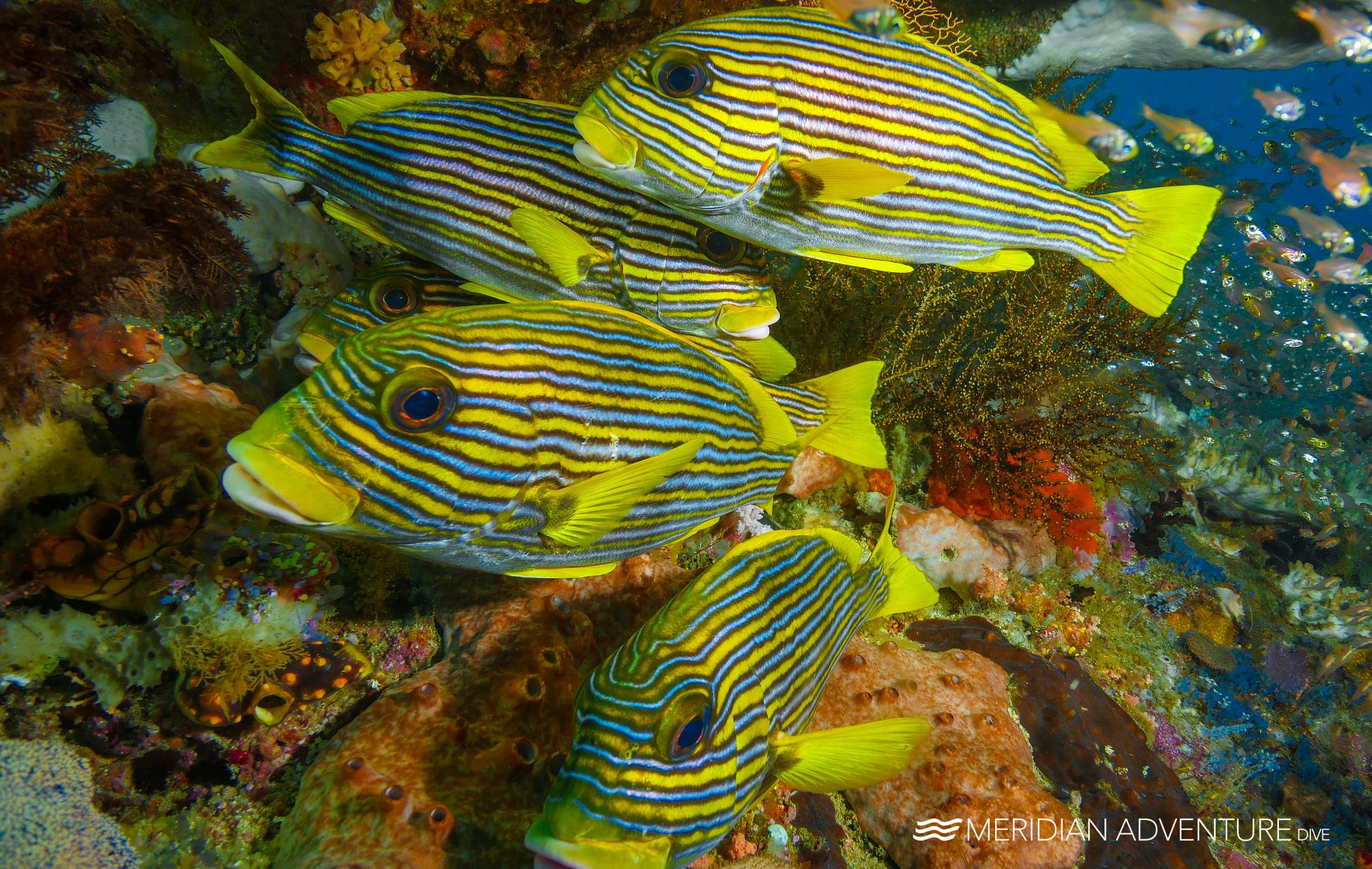 The most commonly encountered in the area are the Yellow-Ribbon and Oriental sweetlips. These species are of the smaller variant but are easily spotted due to their bright yellow colours